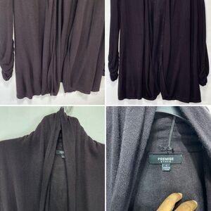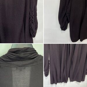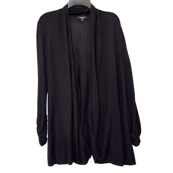 Premise Studio Women Cardigan L Brown Open Ruched Sleeve Cardigan Sweater.