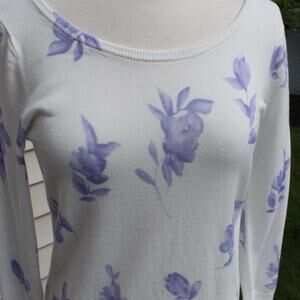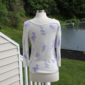 Premise Studio Women's Pullover Sweater Purple Floral White Lightweight Size S