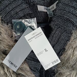 Elevate your wardrobe with this stunning Premise Sweater in size XL. The gray faux fur and wool blend material is perfect for the colder seasons of fall, winter, and spring. The tight-knit pattern and long sleeves make it suitable for various occasions such as travel, parties, business, and casual wear. This cardigan-style sweater features a snap-up design and is solid in color, making it a versatile piece for any outfit. The stretch feature adds to the comfort and the sweater is hand wash only. This sweater is perfect for those who love the bohemian, western, and preppy themes and is a must-have for any fashion-forward woman.