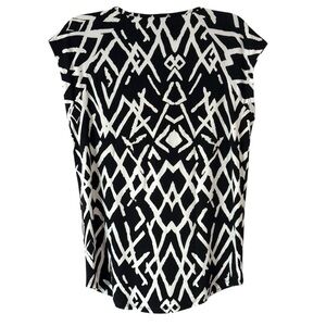 Premise Women Cap Sleeve Mosaic Stripe Diamond Print Neck Black White Medium