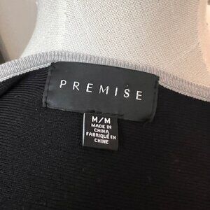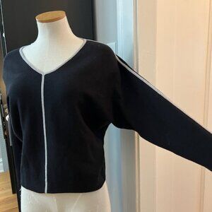 Premise Women's Black Knit V-Neck Sweater Silver Metallic Trim Size Medium