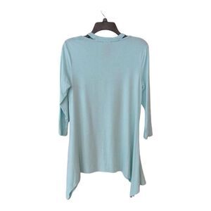 Premise cold shoulder blouse XL. Preloved Sharkbite hem, long sleeve. Color: aqua tint. 95% rayon and 5% spandex.