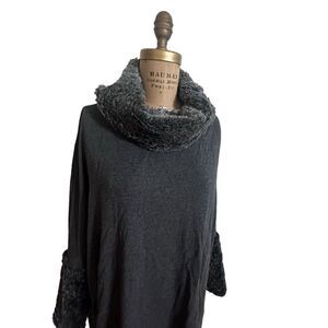 Premise grey jersey tunic with faux fur fleece cowl neck and sleeves size small