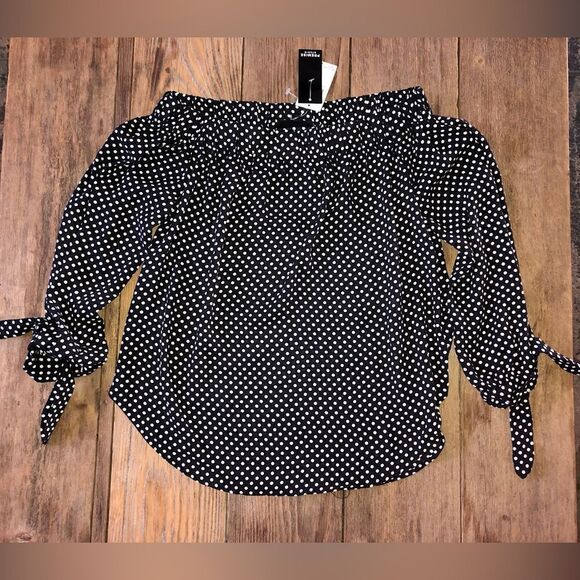 Premise off the shoulder tied 3 1/4 sleeve polka dot top NWT size Xs