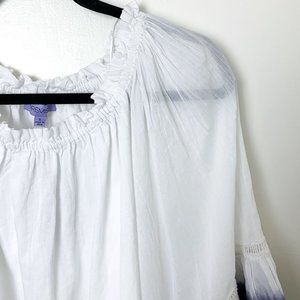 Premise oversized swing blouse in ombre dip dye white and blue size small. Brand new with tags. Small fabric imperfection and mark on backside by shoulder