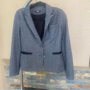 Premise Black/Blue Herringbone Double Button Blazer. Size Small
