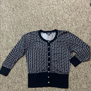 Stylish black and white patterned sweater. Perfect for any occasion.
