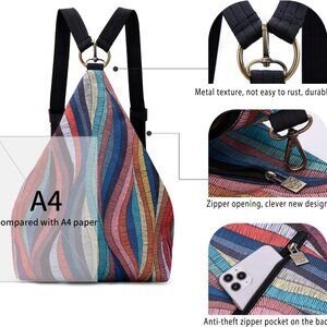 Original Design Inside: Secure zipper, cell phone bag, card bag; Back: Zipper pocket quick access to phone, wallet and other items; The length of shoulder strap can be adjusted freely;It is a fashion backpacks but also a chest backpack;The original bohemian style pattern is very personal,