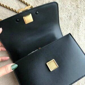 Brand new item with dust bag and label. Crafted from leather and suede trim, brass fittings, and magnetic buckle closure. Comes with top leather handle (12.5 cm) and adjustable, detachable crossbody shoulder strap (40 cm). Includes central pocket compartment and flap pocket. Size: 32*22*12 cm.