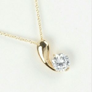 Premium Cubic Zirconia Charm Necklace. Metal Setting Link Chain. 16 inch long 2/3 inch drop. Nickel and Lead Compliant.