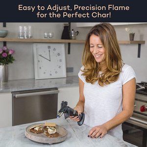 PROFESSIONAL QUALITY CULINARY TORCH - Used in fine restaurants. Ideal for caramelizing sugar atop creme brulee, glazing a baked ham, searing a steak, roasting bell peppers, melting cheese and toasting bread crumbs.
