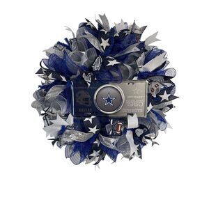 Premium Dallas Cowboys Wreath | Blue Silver Mesh Door Decor | NFC East 1960 Sign