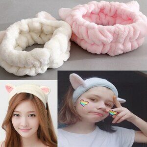 Premium Elastic CatEars Thick Makeup FaceWash Shower Hair Headband C-Blue