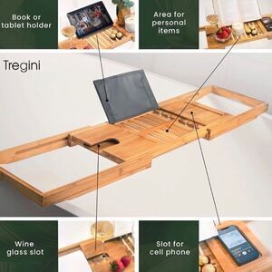 Premium Extendable Bamboo Bathtub Tray w/ Adjustable Reading rack