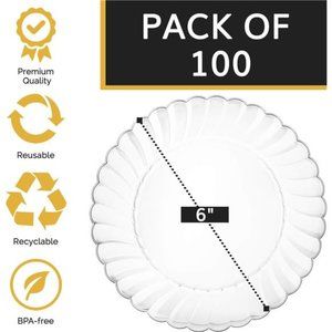 Premium Hard Plastic Plate Set 100 x 6” Clear Round Plates - Washable & Reusable