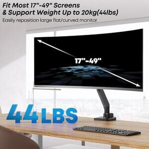 Rock Solid with Wider Compatibility: This single monitor arm fits most flat / curved screens 17 inches to 49 inches with a supporting weight of 2-20 kg (4.4 to 44 lbs) & VESA patterns 100 x 100 mm and 75 x 75 mm. Please check the compatibility before purchase