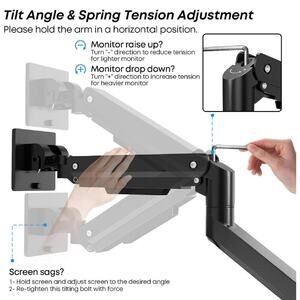 Upgrade Ultrawide Monitor Mount: To keep up with the new trend of larger screens, IMtKotW has designed this heavy duty monitor arm with optimized tilting mechanism to securely hold monitors up to 49 inches, which can provide a smoother adjusting experience for large screens