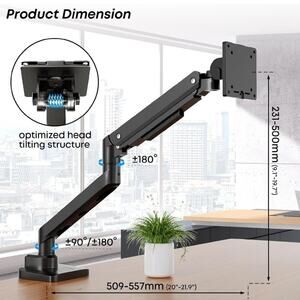 Full Motion Design: This monitor arm features 50° tilt up and 20° tilt down, 180° swivel, 360° rotation and 20" height range for superb flexibility, allowing you to place screen in the best view or elevate your monitor to relieve neck and back strain and optimizes desk space