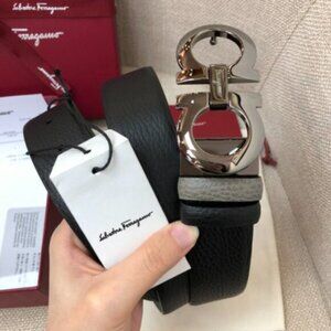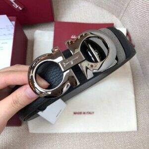 Indulge in the premium quality of this Italian Salvatore Ferragamo black leather belt. The distinctive Gancini buckle makes it a standout piece, ideal for those who appreciate fine accessories. Size: 100