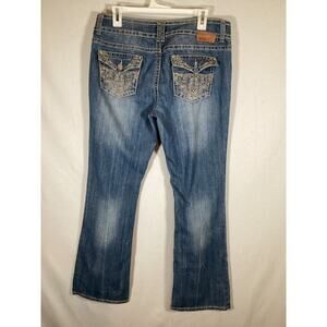 Premium Brand low rise jeans with embellishments on back pockets. They are missing one button on back pocket. Dress up or down!