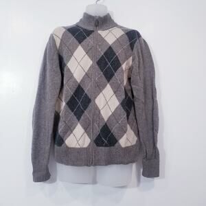 Premium Lambswool by J. Crew Argyle Full Zip Sweater