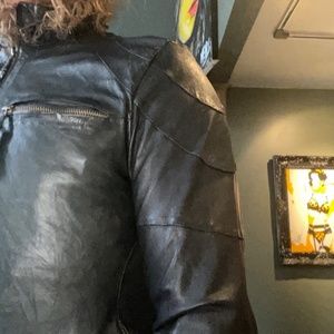 Premium Fine Black Leather Lightweight Jacket, Mens Medium, mfg=Jan Hilmer, brass zippers/hardware
