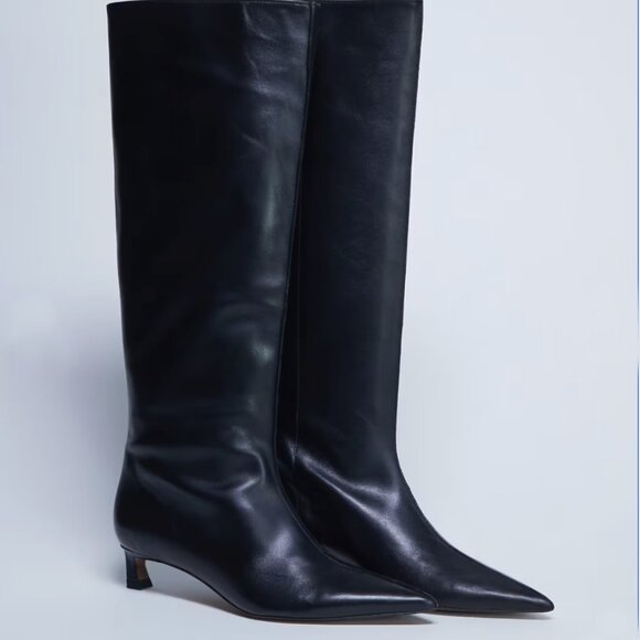 Premium Leather Pointed Toe, Knee-high, Black Boots (SIZE 6)