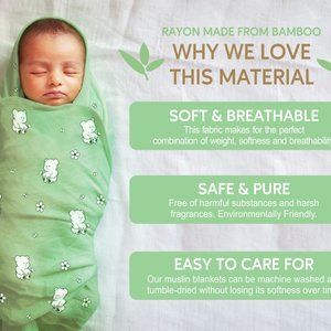 Our Baby Aves Premium Muslin Baby Swaddle Blankets are the perfect choice for keeping your little one cozy and comfortable. Our blankets are crafted from rayon made from bamboo- free of harmful substances and fragrances. This lightweight blanket will maintain softness over time and keep your baby warm without overheating. The Benefits of Swaddling Babies feel secure when wrapped in a tight swaddle and love the calming feeling of being held, just like in the womb. Securely wrapping your baby in a swaddle protects them from their natural startle reflex, which can easily wake them from a deep sleep. Plus, a tight swaddle keeps your newborn's hands away from their face to prevent scrapes and scratches, and our baby blankets are the perfect choice! Versatile Use.