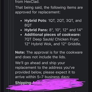 We received a BRAND NEW replacement set from Hexclad, but decided to switch to stainless steel cookware instead. Therefore we are selling the NEW replacement set. See the exchange emails from Hexclad to prove it, in the photos.