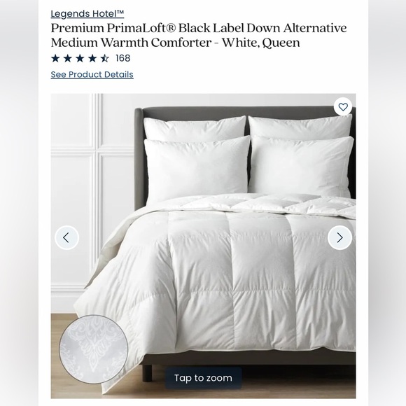 Our Legends Hotel™ PrimaLoft® Black Label comforter is so lofty and light, you’ll never know it’s not down. The soft sateen shell has a style all its own with elegant paisleys and satin piping and our premium PrimaLoft® down alternative fill brings ultimate comfort to your bed.
