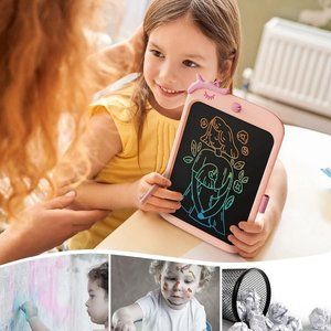Unicorn is one the best attractive things for little girls, our newest unicorn LCD writing tablet will be an excellent playmate. Toddlers can freely enjoy painting and doodling without messing with walls or floors. With a large 10"" inch screen, the colorful writing tablet weighs only 0.45 lbs. Lightweight and convenient to carry. The scribble drawing board will keep your girls excited and engaged for hours. What a great alternative to electronics!