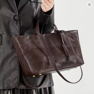 Premium genuine cowhide leather tote bag with smooth oil-wax finish.