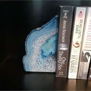 Luxury agate bookends with natural stone trim. Keep your books organized and upright with these natural stone trim bookends. The bookends also beautify their surroundings with a harmonious glow. Natural stone trim provides a subtle but chic accent.