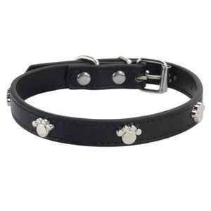 Premium PU Leather Durable Adjustable Dog Collar with Paw Decoration Large