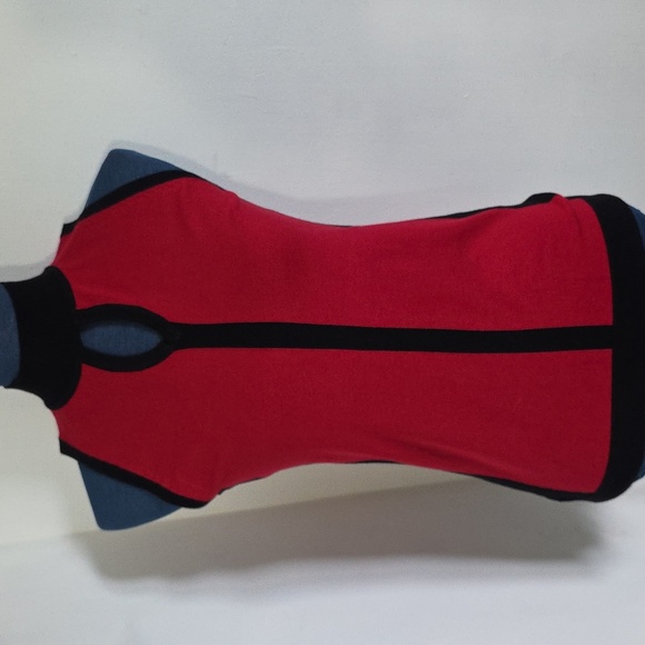 Premose Red and Black Sleeveless Mock Turtleneck Keyhole Soft Sweater