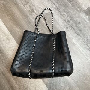 Prene Women's Black The Freddie Tote Bag Perforated Neoprene Roomy Scandi Boho