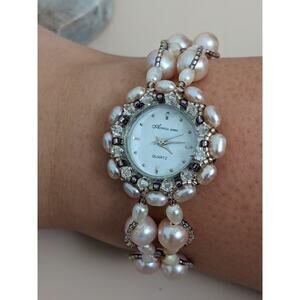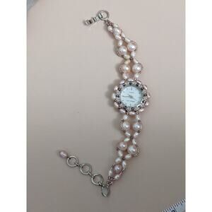 Preowned Across Seas Faux Pearl Beaded Watch Bracelet 7-8.5 in working