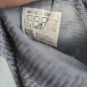 Gray knit sneakers with lace-up design.