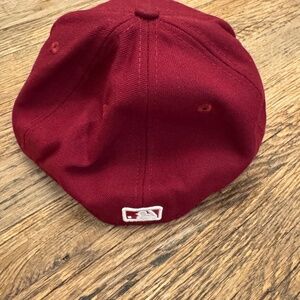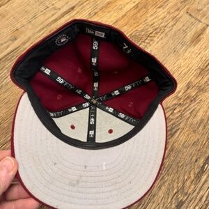 Preowned Atlanta Braves New Era 59Fifty Cardinal White Fitted Ball Cap Hat SZ 7 1/2