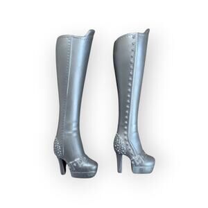 Pre-owned Barbie Doll Silver Boots Tall High Heel