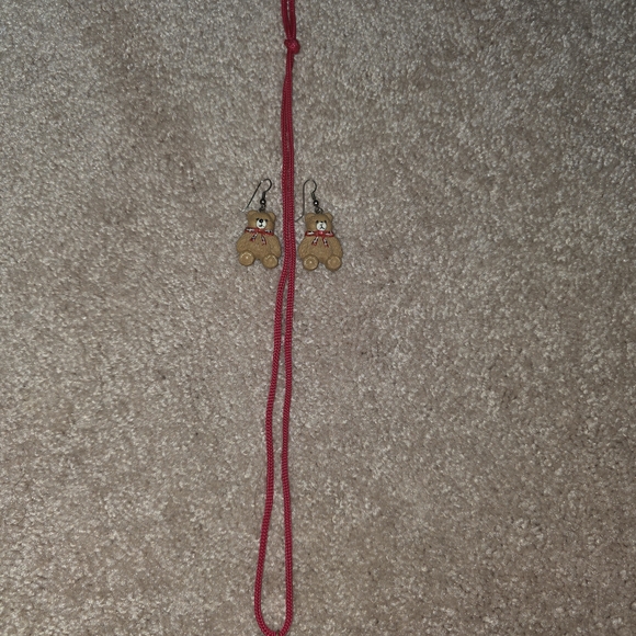 Adorable bear earrings and necklace set in red. Perfect for any little lady.