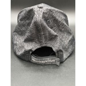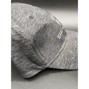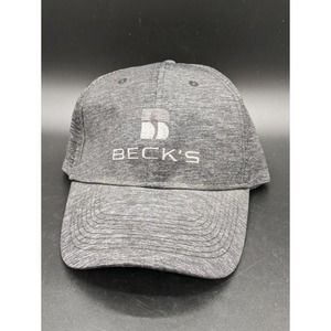 Preowned Becks Hybrid Seeds Dark Charcoal Gray Hat or ball Cap. Adjustable strap marked President's Club. No rips stains or tears. The Crown of the hat (front right panel) does have an indentation, see photos. When you put the hat on, it isn't noticeable. Good preowned condition.