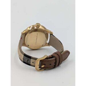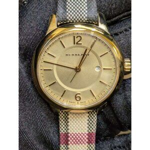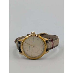 Pre-owned Burberry Stainless Steel Calfskin 32mm Quartz Watch Gold BU10104