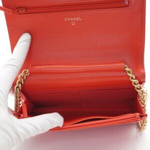 Pre-owned CHANEL Red V-Stitch Wallet on Chain