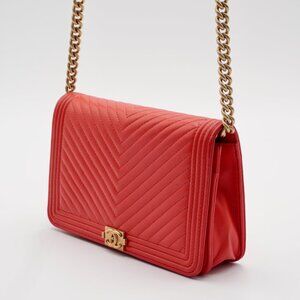 Brand CHANEL - Lamb, V-Stitch Chain Shoulder, Red