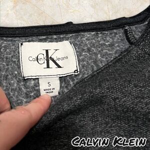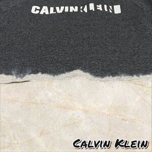 This stylish Calvin Klein cropped sweatshirt combines comfort with an edgy, modern look. Designed with a soft, heathered charcoal gray body, it features a bold white Calvin Klein logo across the chest and unique tie-dye-style detailing on the hem and sleeve cuffs.