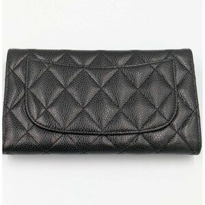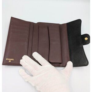 Pre-owned Chanel Caviar Quilted Large Gusset Flap Wallet Black