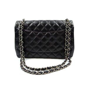 Pre-owned Chanel Lambskin Quilted Jumbo Double Flap Black
