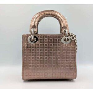 Pre-owned Christian Dior Metallic Patent Micro-Cannage Mini Lady Dior Hyper Pink