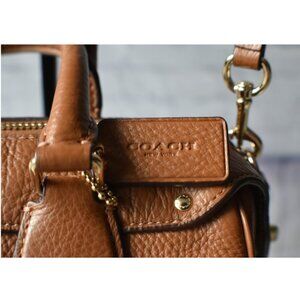Preowned Coach Mini Bennett Satchel crafted from luxurious saddle brown crossgrain leather. This compact yet spacious purse features classic Coach design elements and durable hardware, perfect for everyday use or special occasions.
